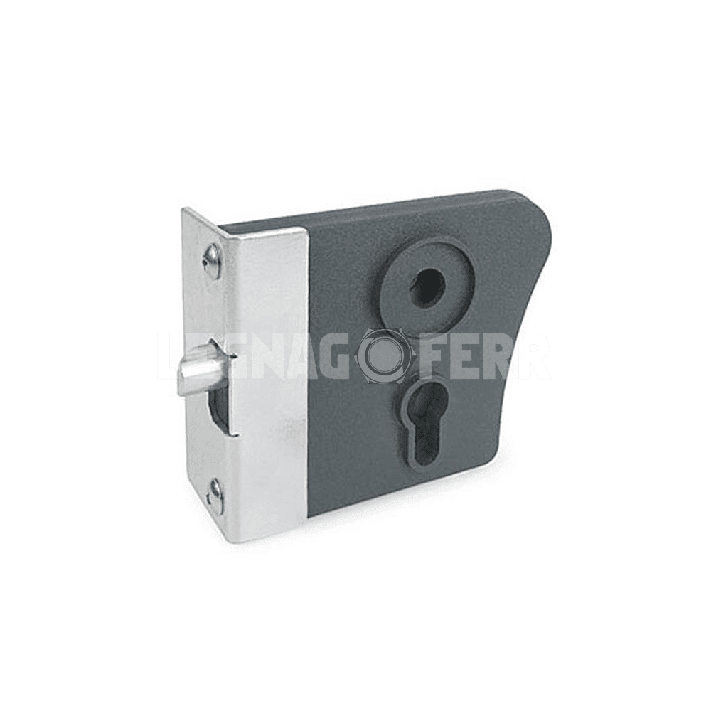 Questo modello è dotato di corpo serratura con frontalino nero, progettato per adattarsi direttamente al cancello tramite fissaggio a viti, rendendo l’installazione rapida e senza il bisogno di fori o saldature professionali.