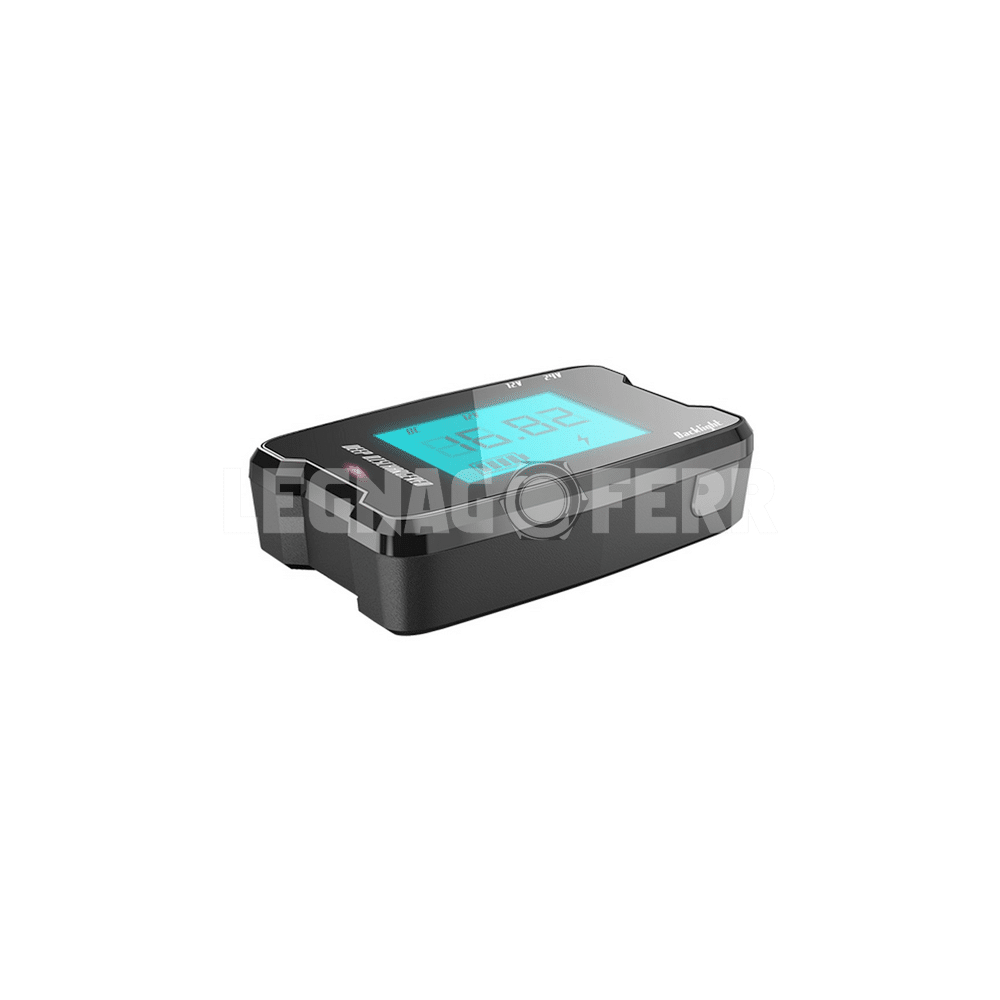 Dotato di display LCD retroilluminato di colore blu, permette di visualizzare la tensione reale della batteria, lo stato di carica tramite simboli e le condizioni del sistema di ricarica.