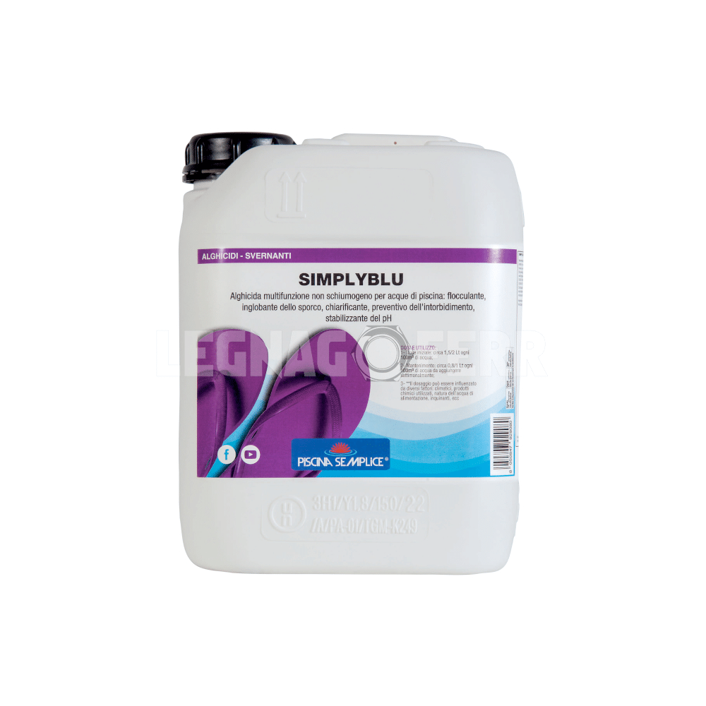 Alghicida multifunzione SimplyBlu 5 kg non schiumogeno. Previene alghe, chiarifica l’acqua e riduce l’uso di altri prodotti.