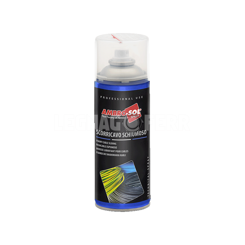 Ambro‑Sol Spray Scorricavo Schiumoso 400 ml è un lubrificante tecnico in bomboletta spray studiato per eliminare l’attrito e facilitare lo scorrimento dei cavi elettrici all’interno di canaline, tubi corrugati e guaine in gomma o plastica, senza danneggiare l’isolamento sintetico. Grazie alla formula schiumosa, il prodotto aderisce efficacemente alle superfici interne e consente un’installazione o rimozione dei cavi più rapida, sicura e senza danneggiamenti, rallentando anche il naturale processo di invecchiamento dei materiali.
