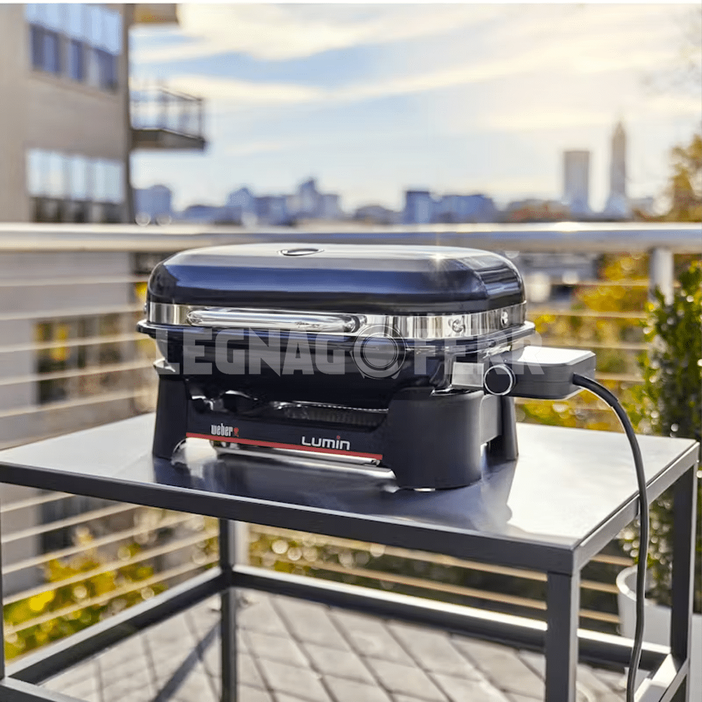 Barbecue elettrico Weber Lumin Compact potente e multifunzione, ideale per balconi e terrazze, con temperatura fino a 315°C.