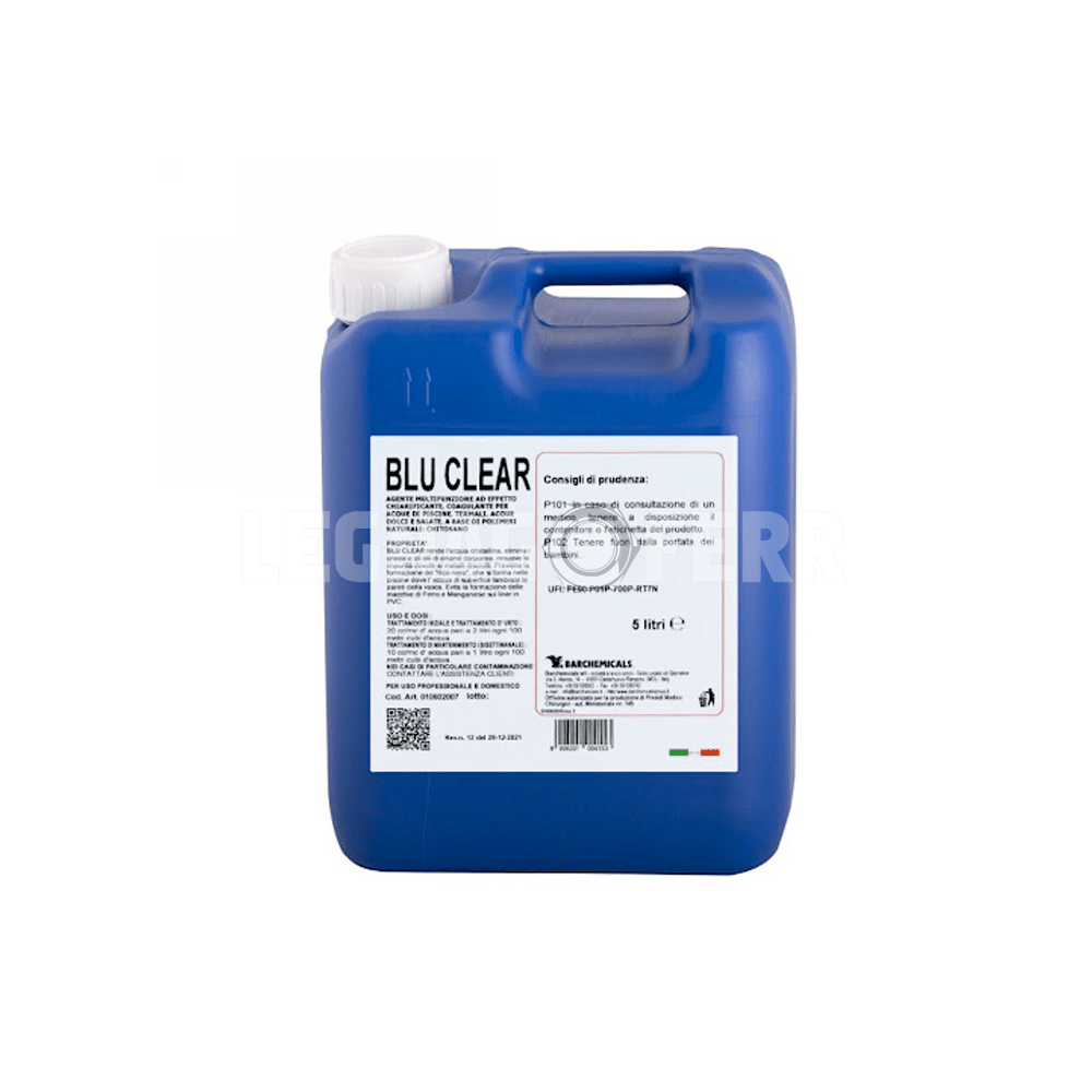 Chiarificante piscina Blu Clear 5L Barchemicals con azione coagulante e anti-metalli. Mantiene l’acqua limpida e migliora la filtrazione.