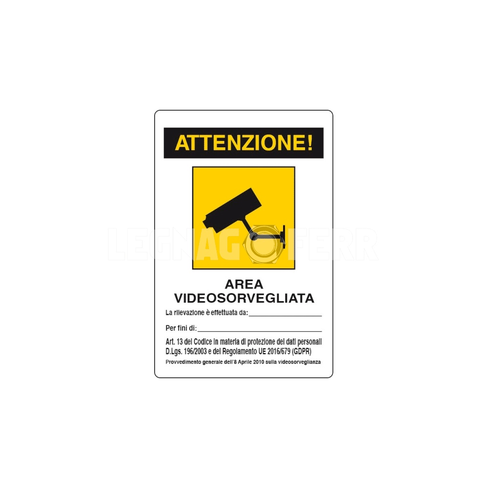 Cartello Attenzione Area Videosorvegliata D&B Verona 04104300cartello attenzione areacartello attenzione area