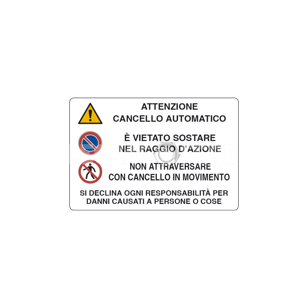 Il testo è immediatamente comprensibile e solitamente accompagnato da colori ad alta visibilità (come giallo e nero) per attirare l’attenzione di pedoni e conducenti, contribuendo così a migliorare la sicurezza di ingressi carrabili, cancelli automatici di garage, accessi aziendali e aree protette.
