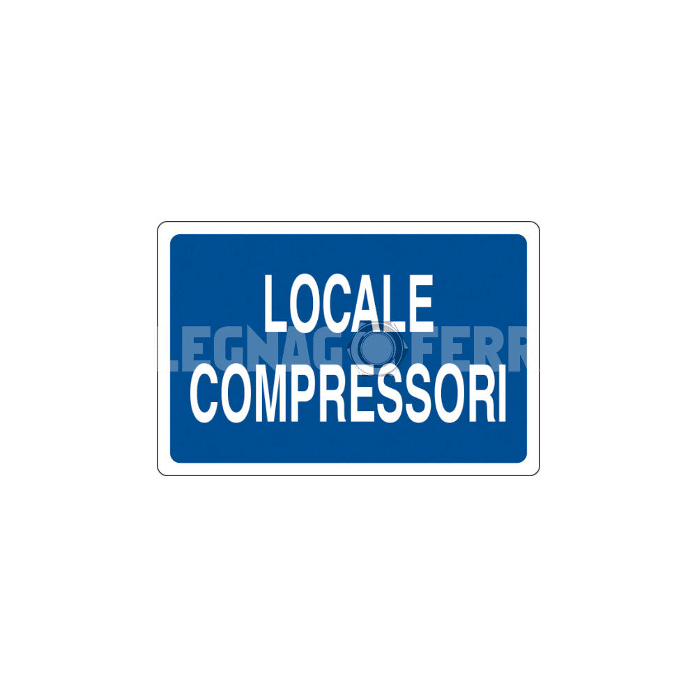 La segnalazione “Locale compressori” serve a facilitare l’individuazione rapida della stanza o zona macchine dedicate ai compressori, migliorando l’organizzazione degli spazi tecnici e contribuendo alla sicurezza sul lavoro.