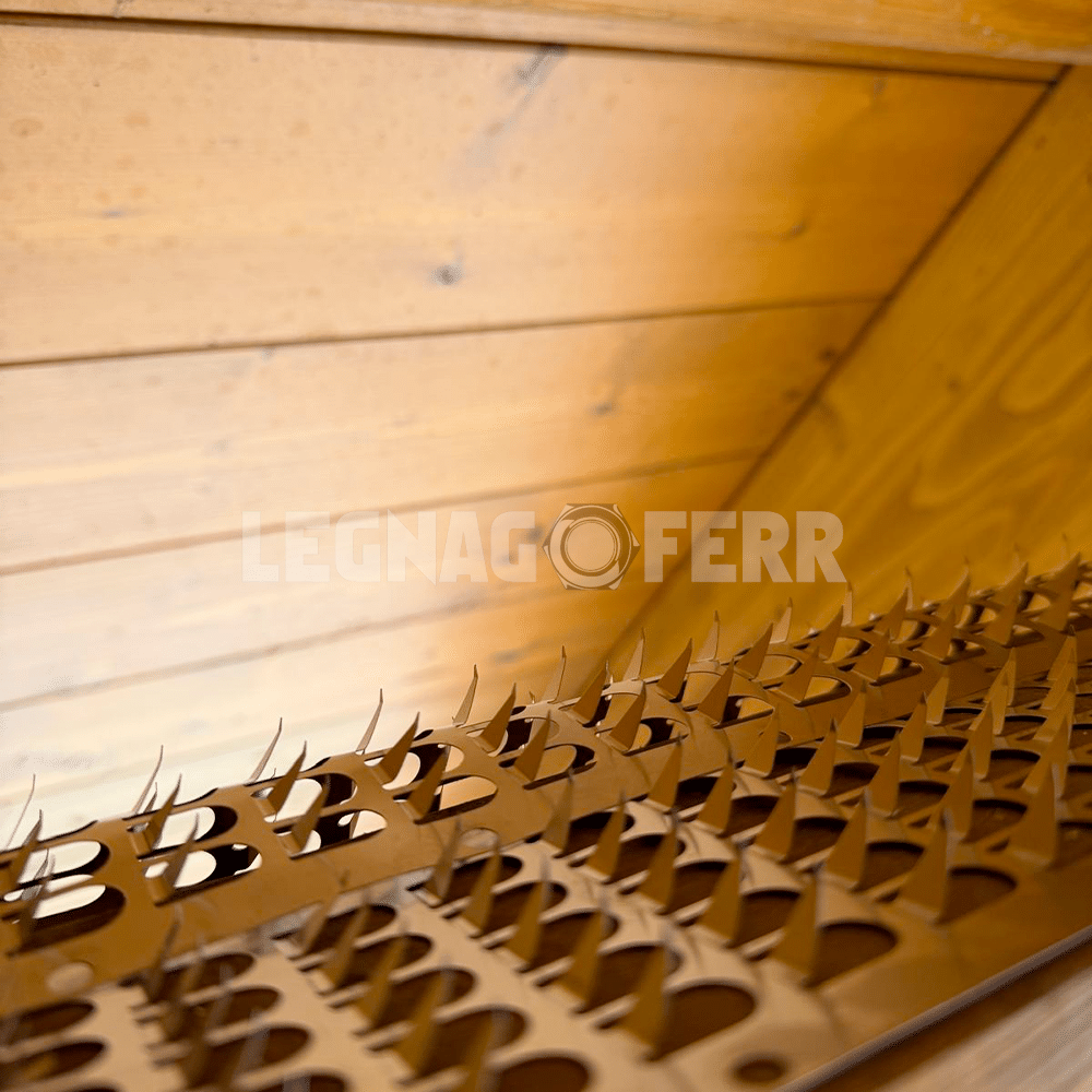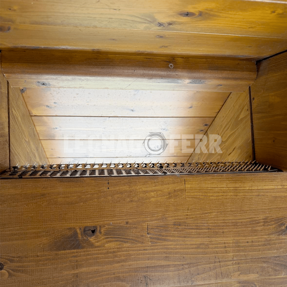 L’elevata altezza degli aghi impedisce fisicamente la posa e lo stazionamento degli uccelli senza arrecare loro danno.