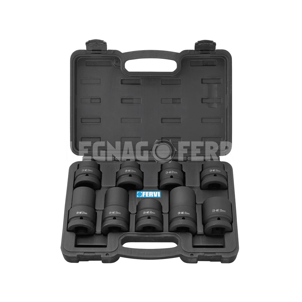 Fervi I109 Set Bussole ad Impatto Attacco 1″ – 9 pezzi
