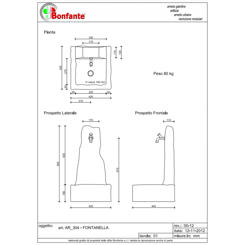 Fontana Houston Fontanella in Pietra Ricostruita Bonfante AR 304 TUF / TAB / GRI / GRI-CR