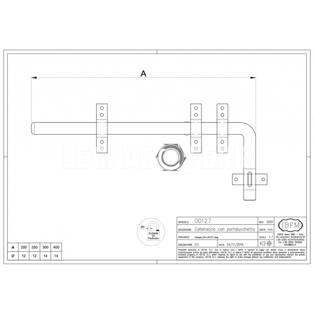 Il catenaccio con portalucchetto IBFM Art. 127 è progettato per offrire una chiusura sicura e durevole in contesti residenziali, agricoli o industriali. Dotato di piastra di rinforzo e anello protetto per lucchetto, rappresenta una soluzione affidabile per proteggere accessi e aperture esterne.