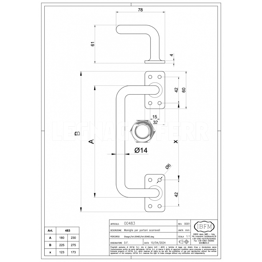 IBFM 483 Maniglia per Portone – Tipo Piegato