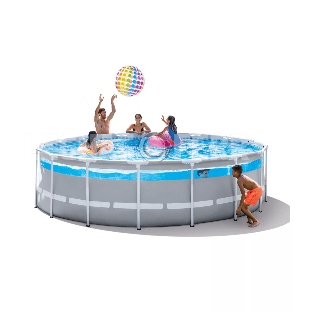 Piscina fuori terra Intex Prisma Frame Clearview 488×122 cm, con pareti trasparenti e struttura in acciaio zincato, facile da montare e ideale per il divertimento estivo di tutta la famiglia.