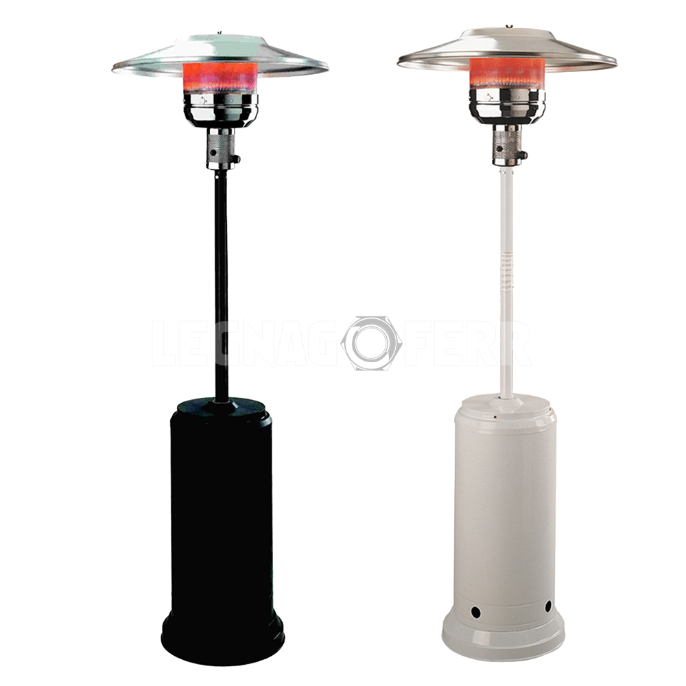 Stufa a fungo con generatore di calore ad infrarossi in acciaio verniciato a polveri epossidiche.