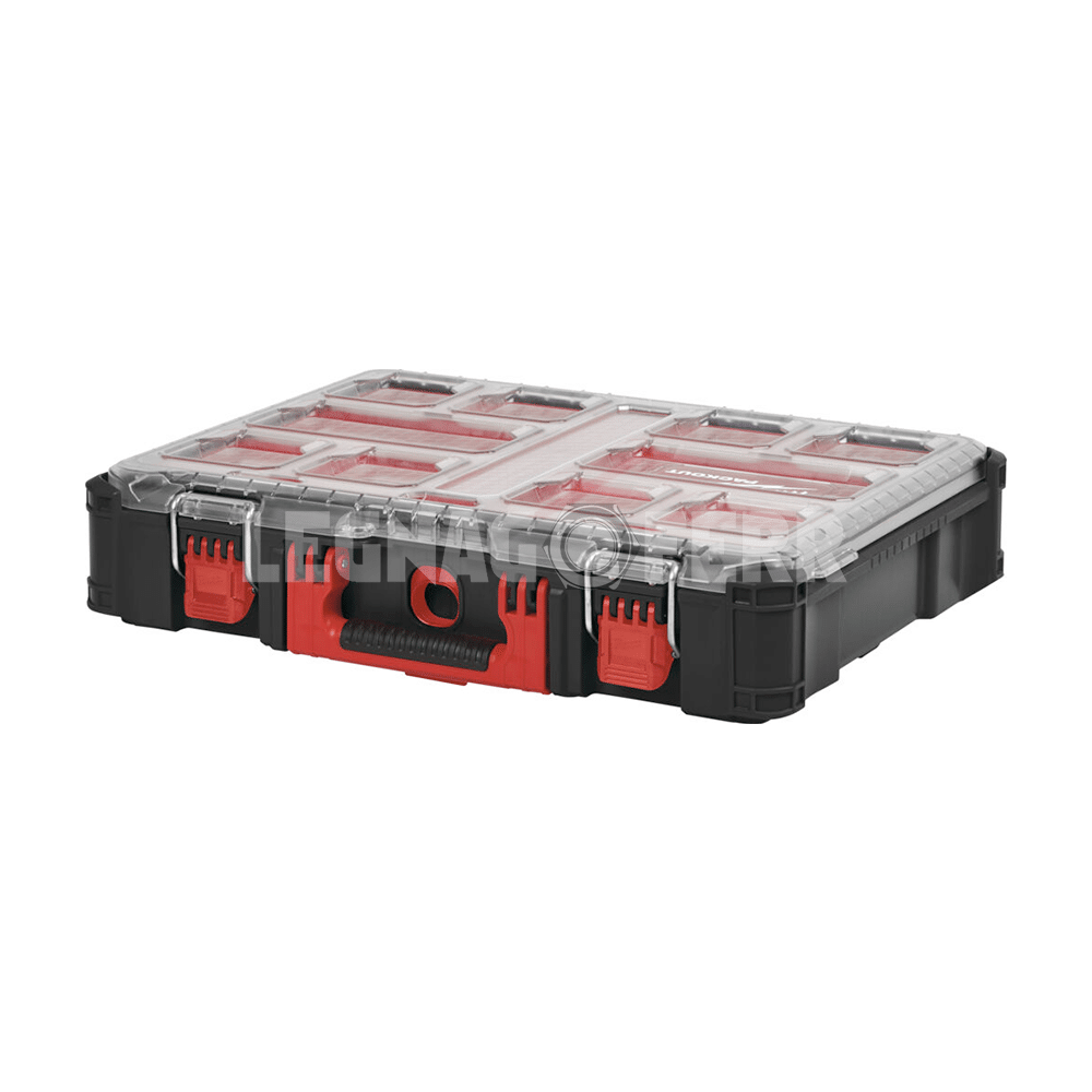 Il Milwaukee PACKOUT Organiser è una valigetta porta accessori progettata per offrire organizzazione, resistenza e praticità ai professionisti che lavorano in cantiere, officina o installazione. Questo organizer fa parte del sistema modulare Milwaukee PACKOUT Modular Storage System, che consente di combinare diversi moduli di stoccaggio per creare configurazioni personalizzate per il trasporto degli utensili.