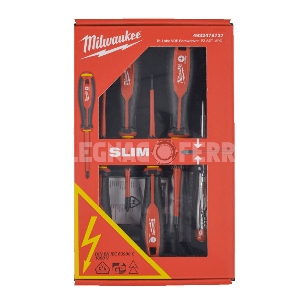 Il set giraviti isolati 1000V Milwaukee da 5 pezzi è progettato specificamente per lavori su circuiti elettrici sotto tensione fino a 1000V. Con la certificazione VDE e doppio isolamento, questi giraviti offrono la massima sicurezza per elettricisti e tecnici che operano in ambienti elettrici pericolosi.