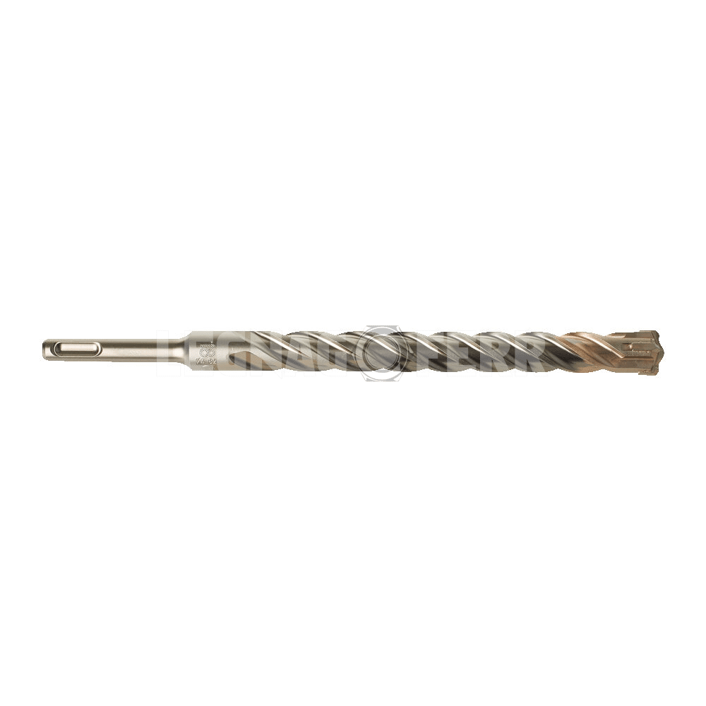 La testa in carburo massiccio a 4 taglienti (Full Carbide 4-Cutter) garantisce resistenza agli urti e lunga durata, anche a contatto con ferri d’armatura. Il disegno a 4 canali elicoidali permette una rapida espulsione della polvere, riducendo l’attrito e mantenendo il foro stabile e preciso.