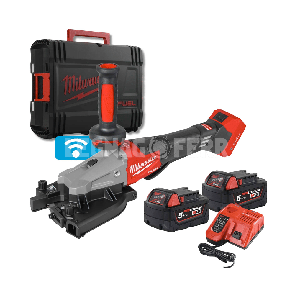 Viene fornito con lama cermet, sacchetto di raccolta, chiave a brugola e — nel kit completo — con batterie M18™ 5,0 Ah e caricabatterie rapido, il tutto in una valigetta heavy-duty.