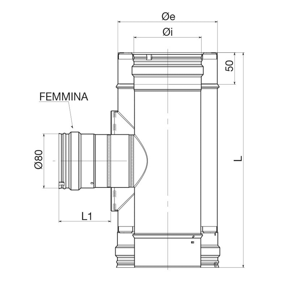 Raccordo a T 90° Ridotto Ø 80 Femmina Doppia Parete Apros T90F Canne Fumarie
