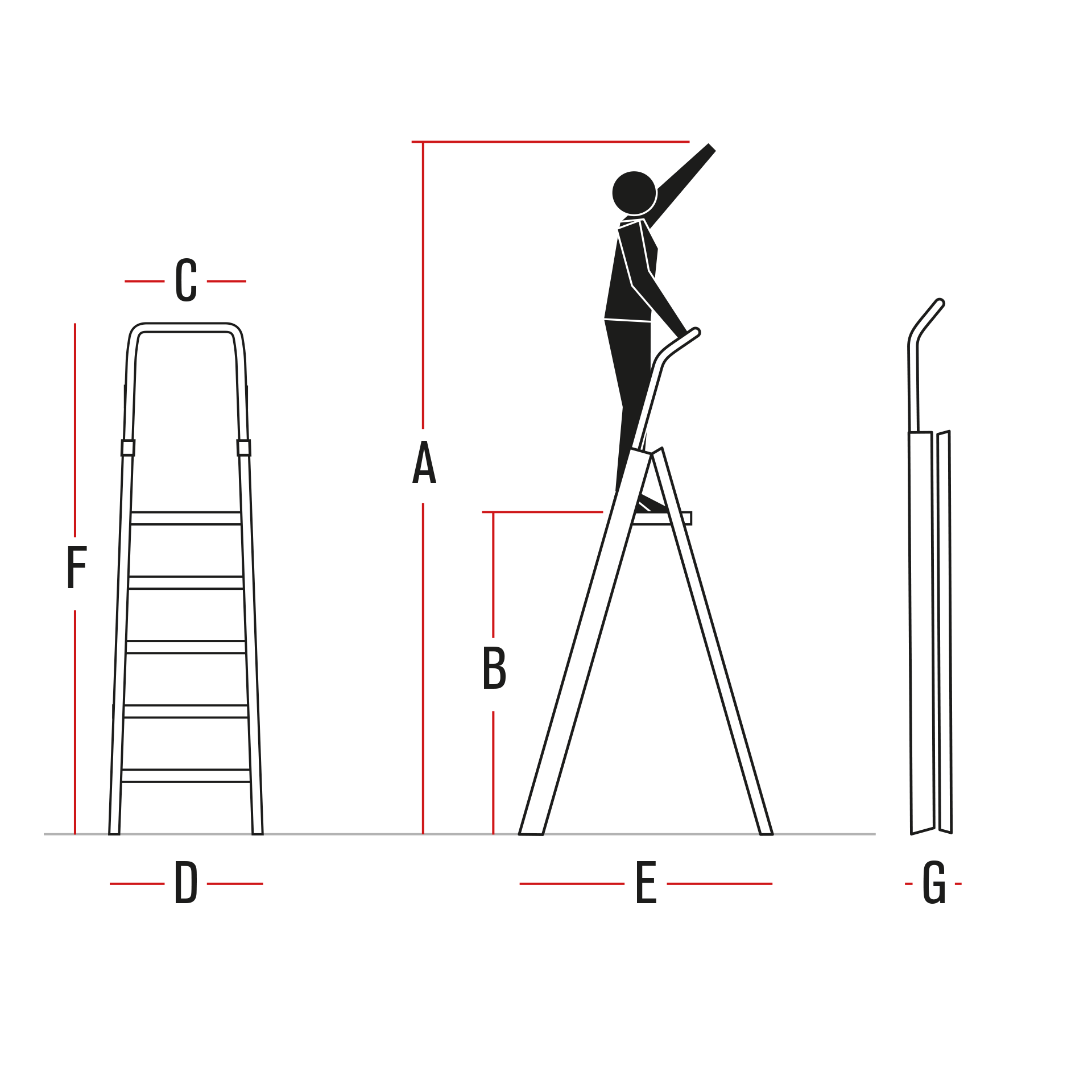 Chiusa occupa poco spazio (16 cm), comoda da riporre in ogni angolo. È possibile appenderla a parete con il gancio appendi scala optional (cod. LADY-GANC)