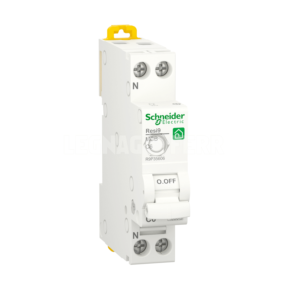 Schneider R9P35606 Resi9 MCB 1P+N 6A Curva C – Interruttore 4,5 kAschneider r9p35606schneider r9p35606