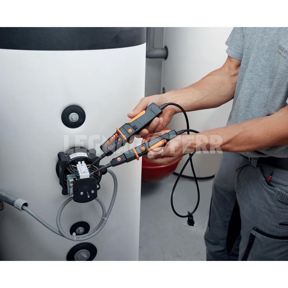 - Chiaro display a LED, fibra ottica di grande capacità, torcia per illuminare i punti di misura, anello antiscivolo e impugnatura ergonomica, funzione trigger RCD, pulsanti di carico vibranti