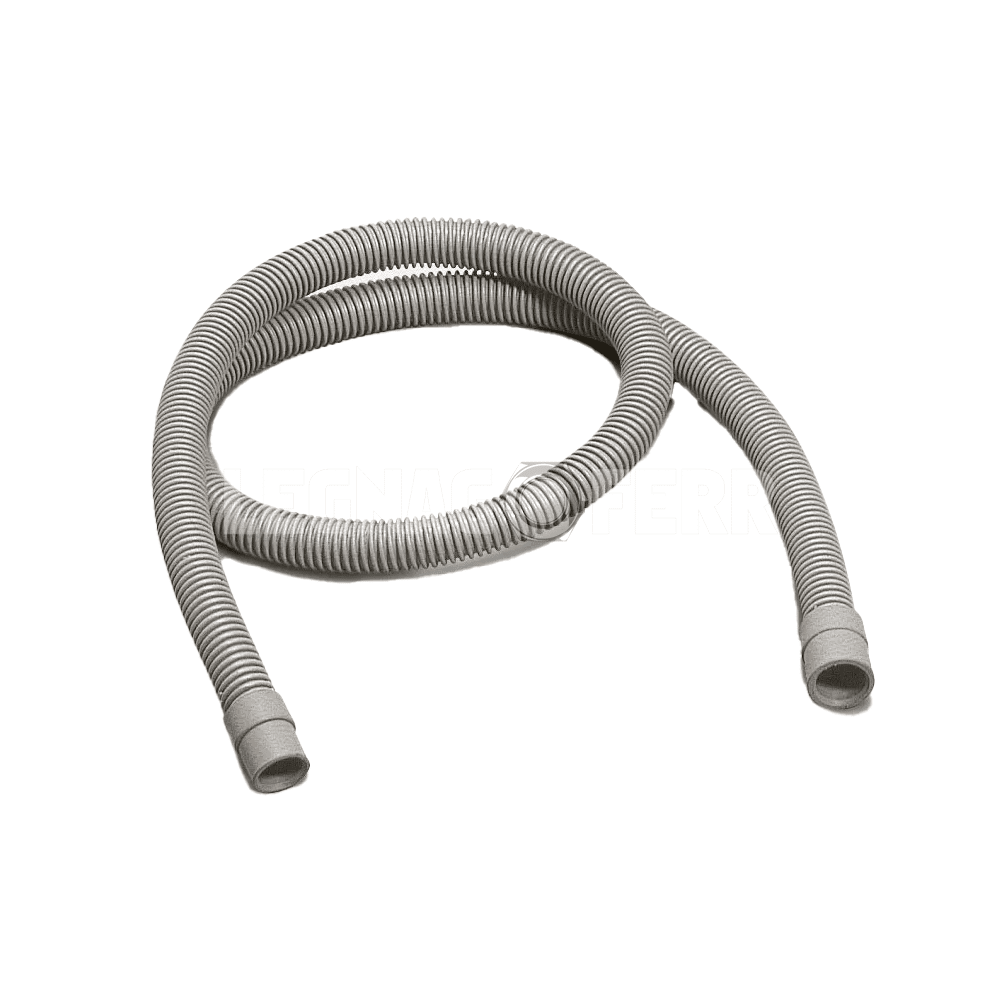 Tubo scarico lavatrice in materiale plastico da 100 cm con manicotti in gomma, per collegare l’elettrodomestico allo scarico domestico.