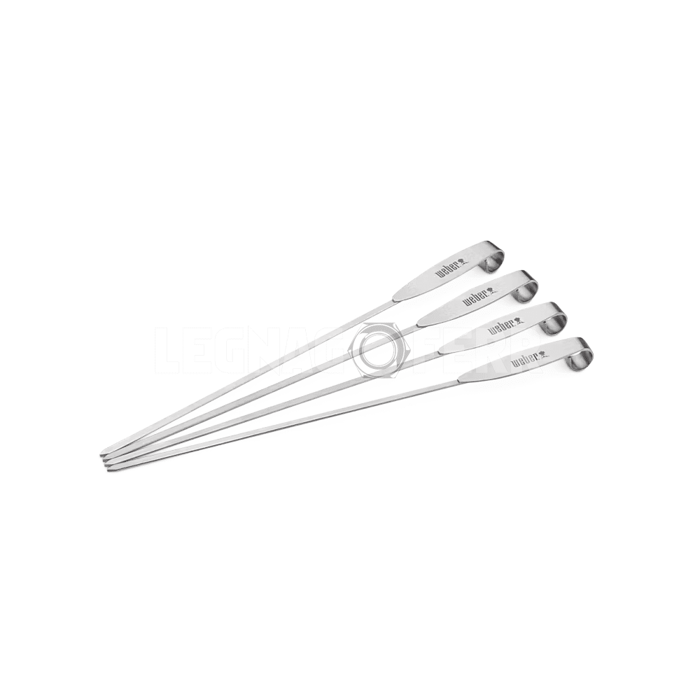 Il set di 4 spiedini in acciaio inossidabile cod. 7618 di Weber è progettato per arricchire la tua esperienza di grigliata offrendo una soluzione versatile per cucinare antipasti, verdure, frutta, gamberi o piccoli pezzi di carne, mentre la portata principale cuoce sulla griglia.